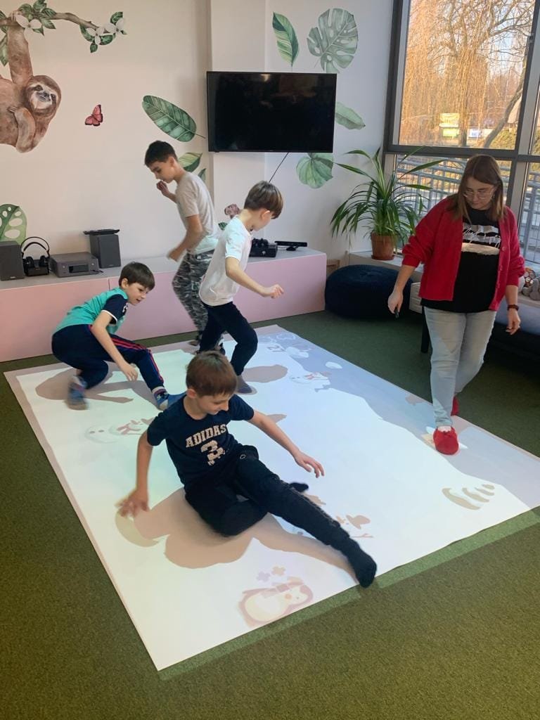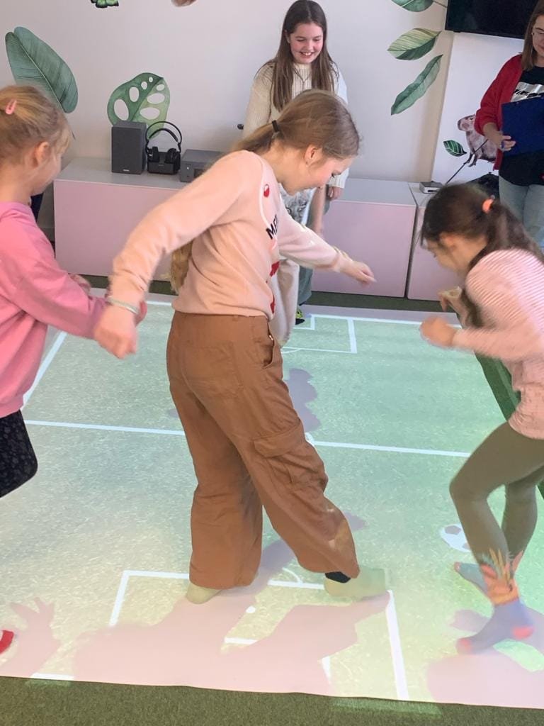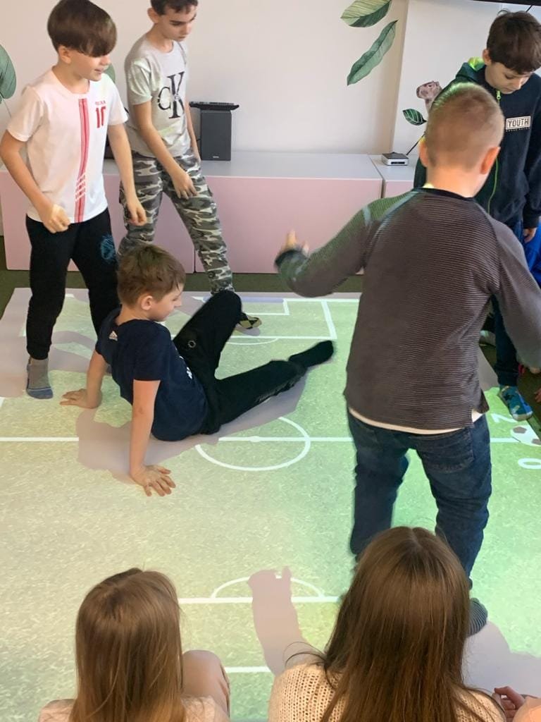 → mini mecze piłki nożnej na macie interaktywnej.