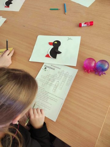 Zima, zima pada śnieg. Przygoda z wesołymi pingwinami. Pod takim hasłem uczniowie klas 1- 4 Szkoła Podstawowa nr 8 im. Jana Pawła II w Będzinie spędzili 3 godziny na kreatywnych zajęciach podczas, których: