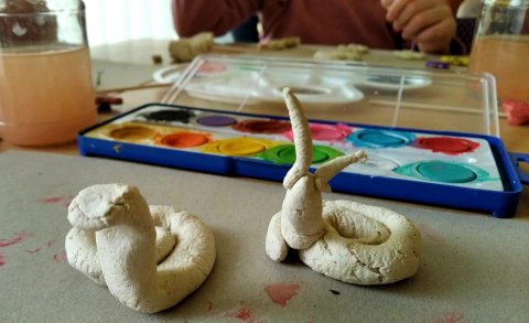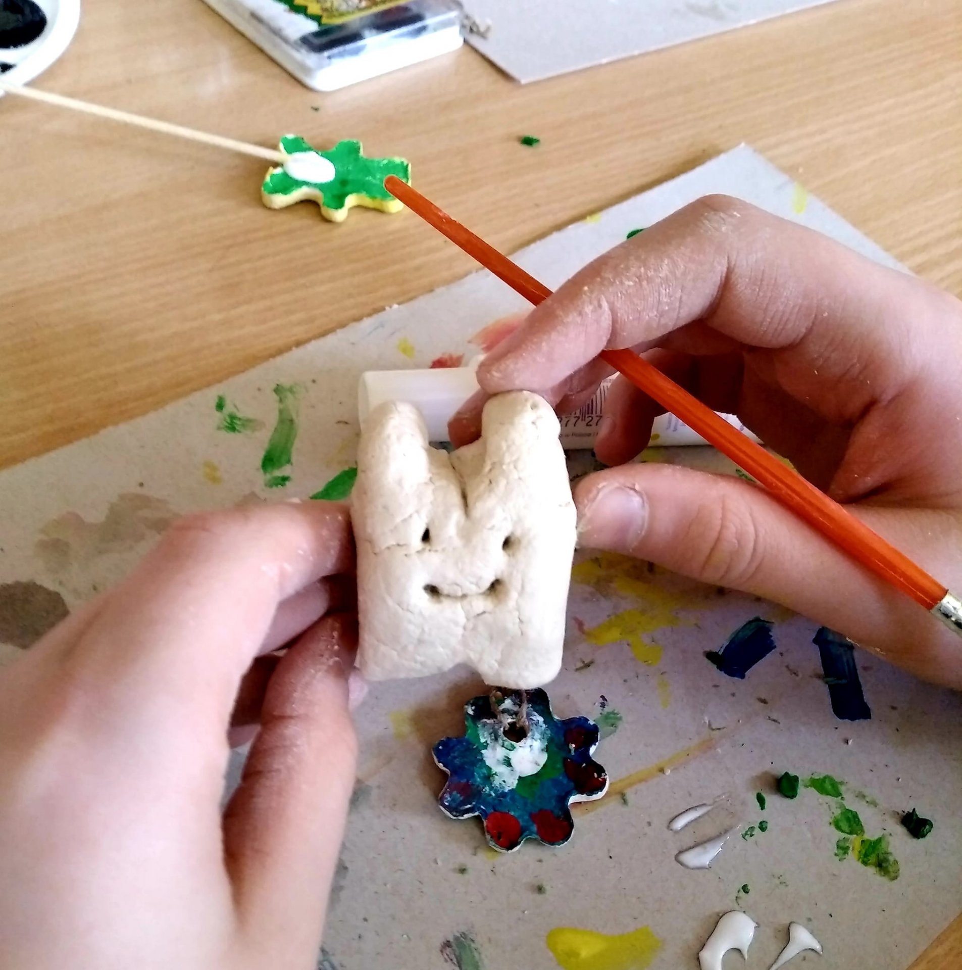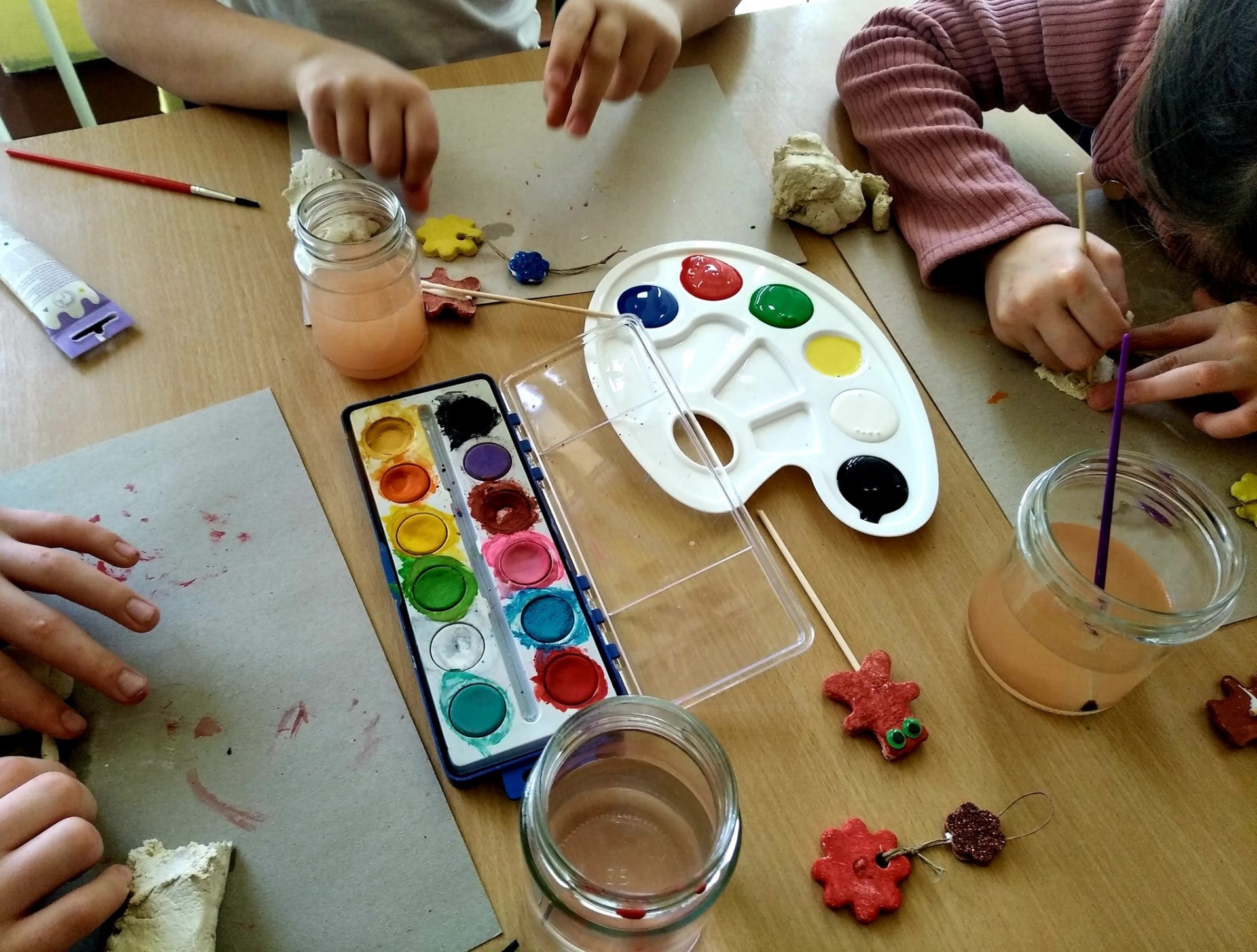 Oto kolejna grupa dzieci uczestniczących w półkoloniach miejskich organizowanych w Szkoła Podstawowa nr 4 im. Stanisława Staszica w Będzinie miała masę pomysłów w tworzeniu i ozdabianiu figurek z masy papierowej.