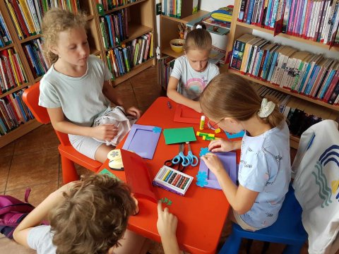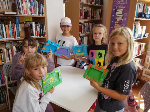 W ramach półkolonii miejskich Filia nr 5 - Grodziec przygotowała warsztaty kreatywne dla dzieci z SP nr 3 oraz SP nr 6 z wykorzystaniem książki popularnonaukowej Anieli Cholewińskiej – Szkolik „Wszystko, co można zrobić z modeliny, plasteliny, koralików”. Podczas zajęć dzieci tworzyły ramki na zdjęcia wakacyjne i opowiadały o wakacjach, na których już były i na które jeszcze się wybierają. Wesoła i swobodna atmosfera przyczyniła się do powstania fantastycznych prac. Uczestnicy, wychodząc z zajęć i pozując do zdjęć planowali już gdzie powieszą lub postawią swoje nowe ramki.