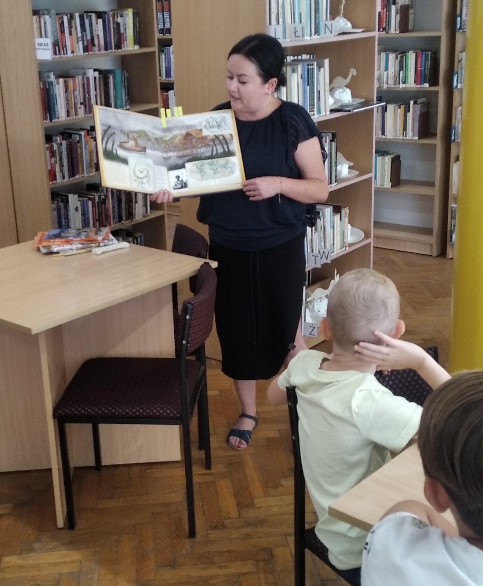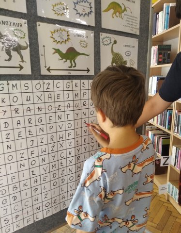 Na spotkanie, które odbyło się w filii nr 1 Ksawera przyszły dzieci z Miejskiej Świetlicy Środowiskowej w Będzinie. Zafascynowani książką przeglądali kolejne strony i szukali informacji o rozmiarach, kostnych kolcach, zębach, szponach i jajach dinozaurów.