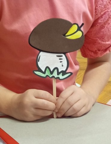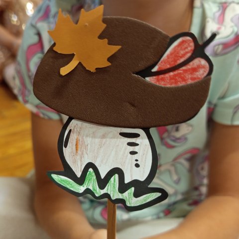 Przedszkolaki miały dziś także okazję przygotować jesienną dekorację - grzybka na piku, który pięknie przyozdobi np. doniczkę.