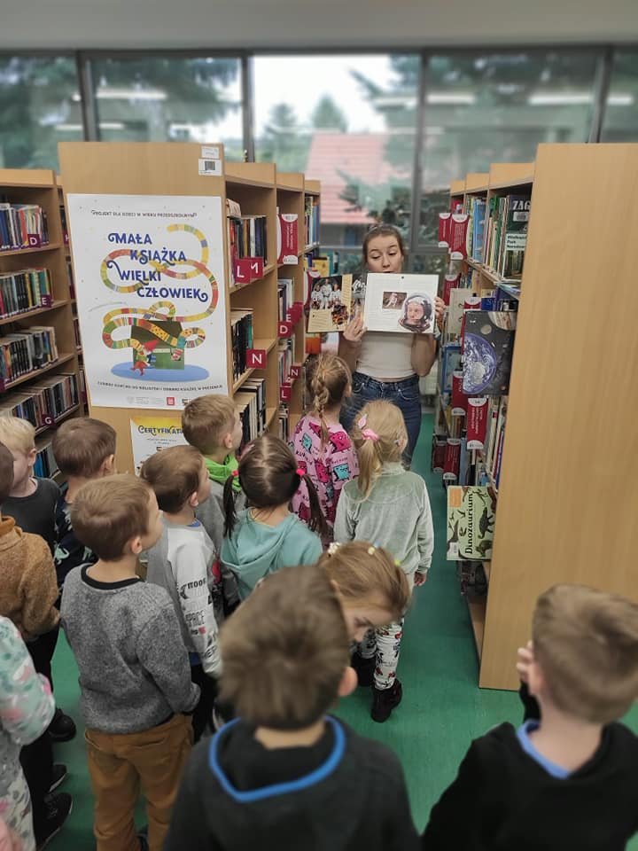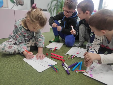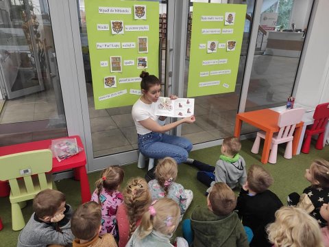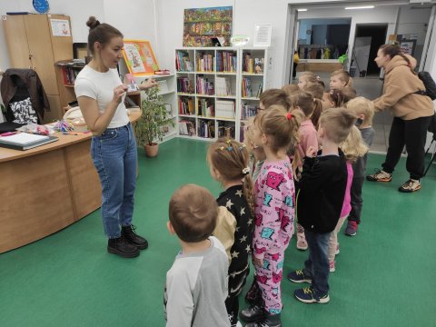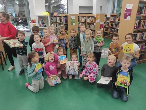 Będzińską bibliotekę bardzo chętnie odwiedzają dzieci w wieku przedszkolnym. Dzięki wizytom oraz zajęciom z edukacji czytelniczo-medialnej, najmłodsi mają szanse zapoznać się ze zbiorami oraz bibliotecznymi zasadami. Wizyta dzieci z Przedszkola Miejskiego nr 13 w Będzinie pozwoliła im dowiedzieć się jakie książki znajdują się w Oddziale dla dzieci i młodzieży, co trzeba zrobić by się zapisać oraz jak młodych bohaterów czytelnictwa biblioteka przyjmuje w swoje progi. Spotkanie umiliło czytanie książki pt. "Ciekawski George w bibliotece" autorstwa Margaret i H. A. Rey oraz stworzenie kolorowych zakładek.