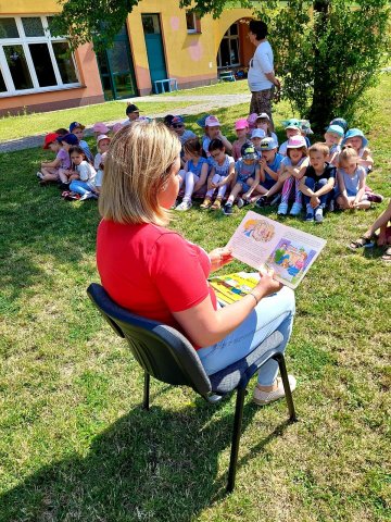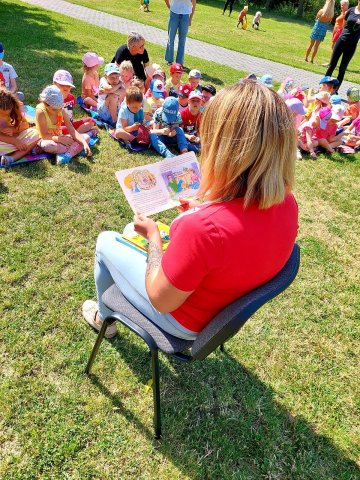 Podczas wizyty bibliotekarza Filii nr 7 Zamkowe w Przedszkolu Miejskim nr 2 w Będzinie dzieci wysłuchały opowiadania z serii "Julka poznaje świat: Jadę na wakacje". Bohaterka opowiadania, Julka obawiała się wyjazdu na wakacje nad morze. Nie przepadała za zmianami i nie miała ochoty na poznawanie nowych osób i miejsc. Jednak na wyjeździe z rodzicami zmieniła zdanie po tym jak poznała koleżankę Klaudię, z którą się zaprzyjaźniła i bawiła każdego dnia. Ostatecznie wyjazd nad morze okazał się dla Julki bardzo udany, dostarczył wielu ciekawych wspomnień , a nade wszystko przekonał, że nie należało się niczego bać. Przedszkolaki po wysłuchaniu opowiadania same zaczęły rozmowiać o swoich wymarzonych wakacjach, o tym gdzie dotychczasz były, a gdzie pojadą w tym roku.