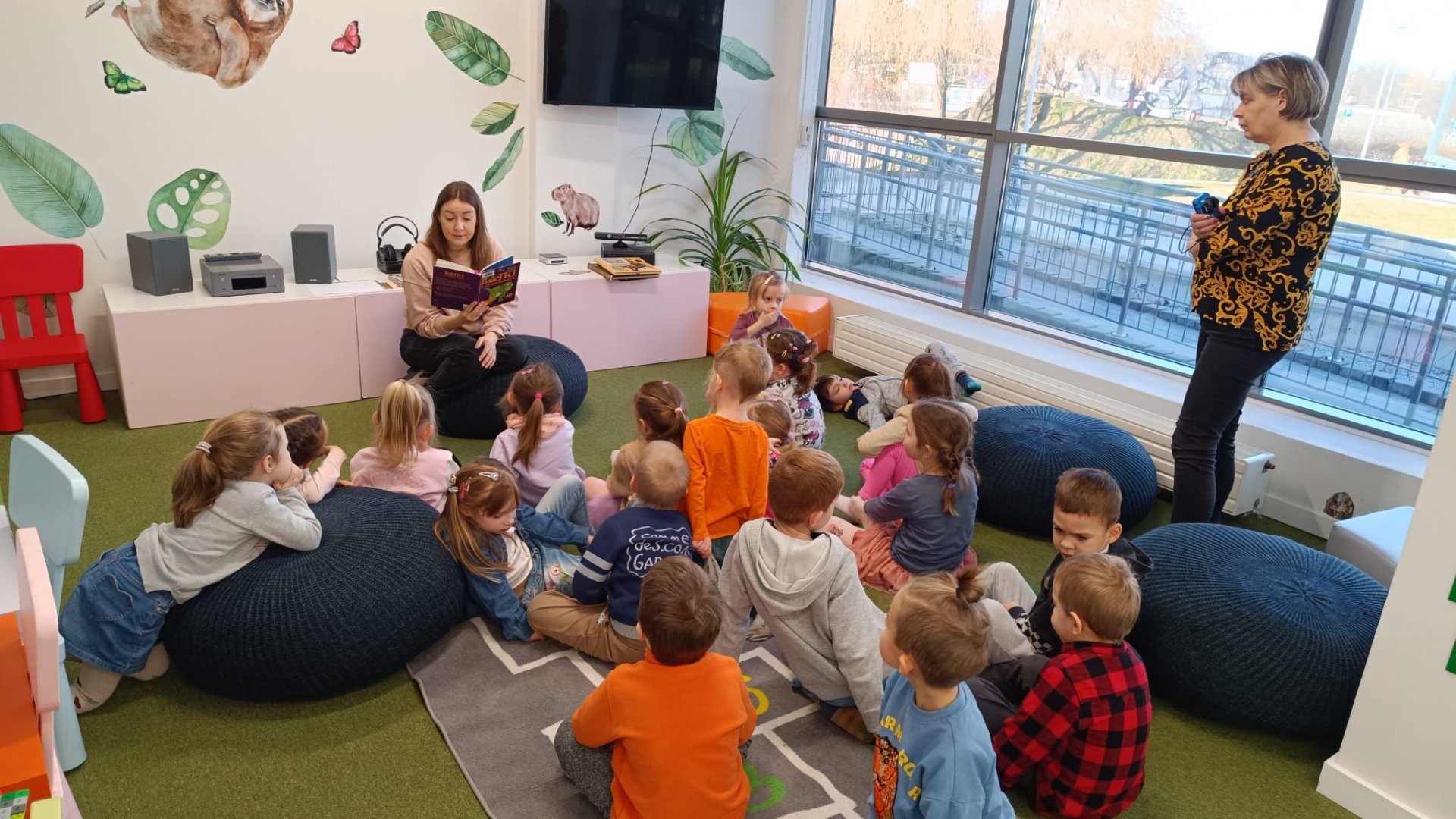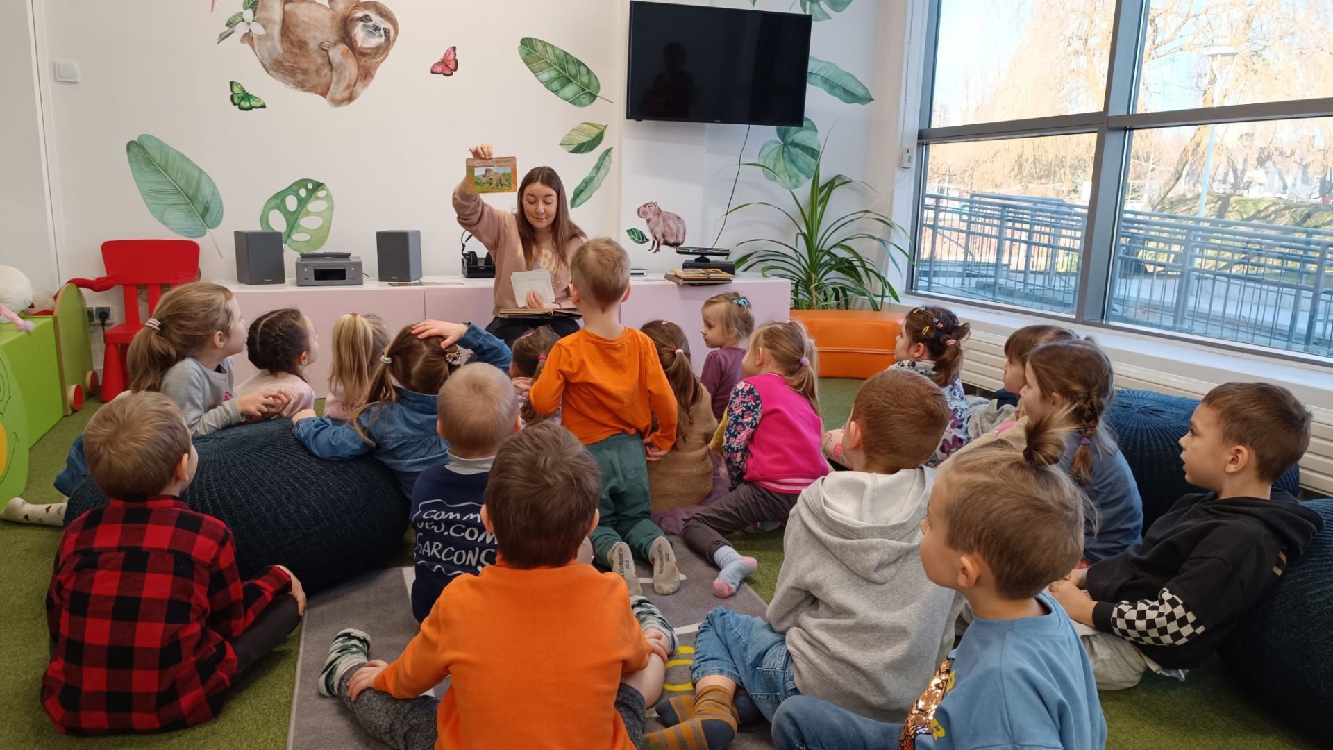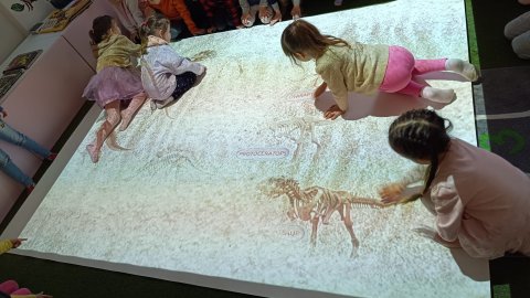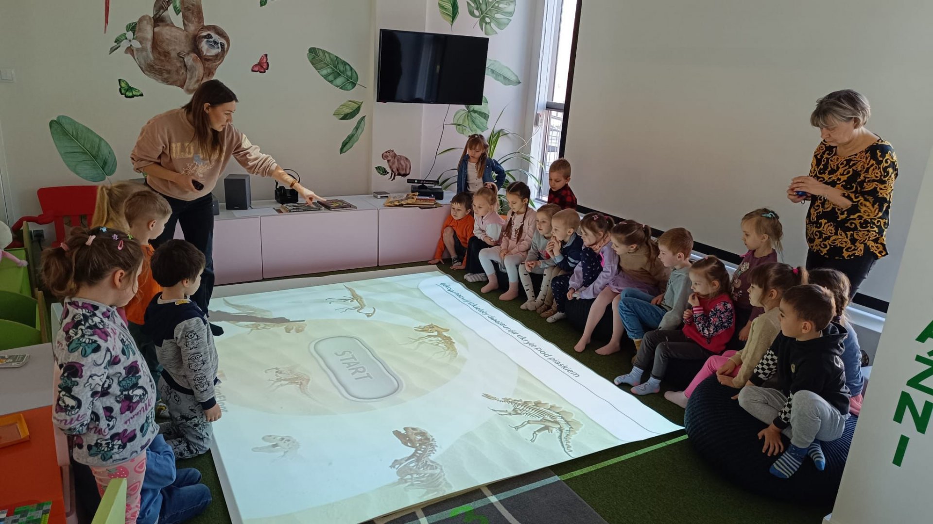 Niedawno, a dokładnie 26 lutego obchodziliśmy Światowy Dzień Dinozaura. Z tej okazji Oddział dla dzieci i młodzieży odwiedziło Przedszkole Miejskie nr 1 w Będzinie. Najmłodsi czytelnicy wysłuchali ciekawej historii Płetwka, który postanowił wyjść z wody na ląd oraz porozmawiali z bibliotekarką o najważniejszych aspektach paleontologicznych. Poznali rodzaje dinozaurów, teorie jak wyginęły oraz ich późniejszych potomków. Dzięki wykorzystaniu interaktywnej podłogi FunFloor w ramach zabawy edukacyjnej wzięli udział w wirtualnych wykopaliskach. Zostały dla nich zorganizowane także poszukiwanie prehistorycznych kości między bibliotecznymi półkami oraz ozdabianie swojego dinozaura, który w trakcie zabawy wykluwał się z jajka.