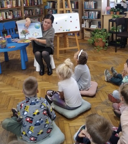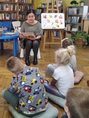 Jesień obdarowała nas pięknymi barwami spadających z drzew liści i koszami pełnymi pachnących grzybów. Dzieci zbierają teraz żołędzie i kasztany, aby przygotować z nich rozmaite figurki. Tak robi także bohaterka książki Anny Włodarkiewicz pt. "Jesień Toli". Dziewczynka czerpie wiele radości najpierw z rodzinnego spaceru po parku, a potem z zabawy w tworzenie ozdobnych zwierzątek i ludzików. Opowiadanie bardzo spodobało się Żabkom z będzińskiego Przedszkole Miejskie nr 6 w Będzinie, które odwiedziły filię nr 1 - Ksawera.