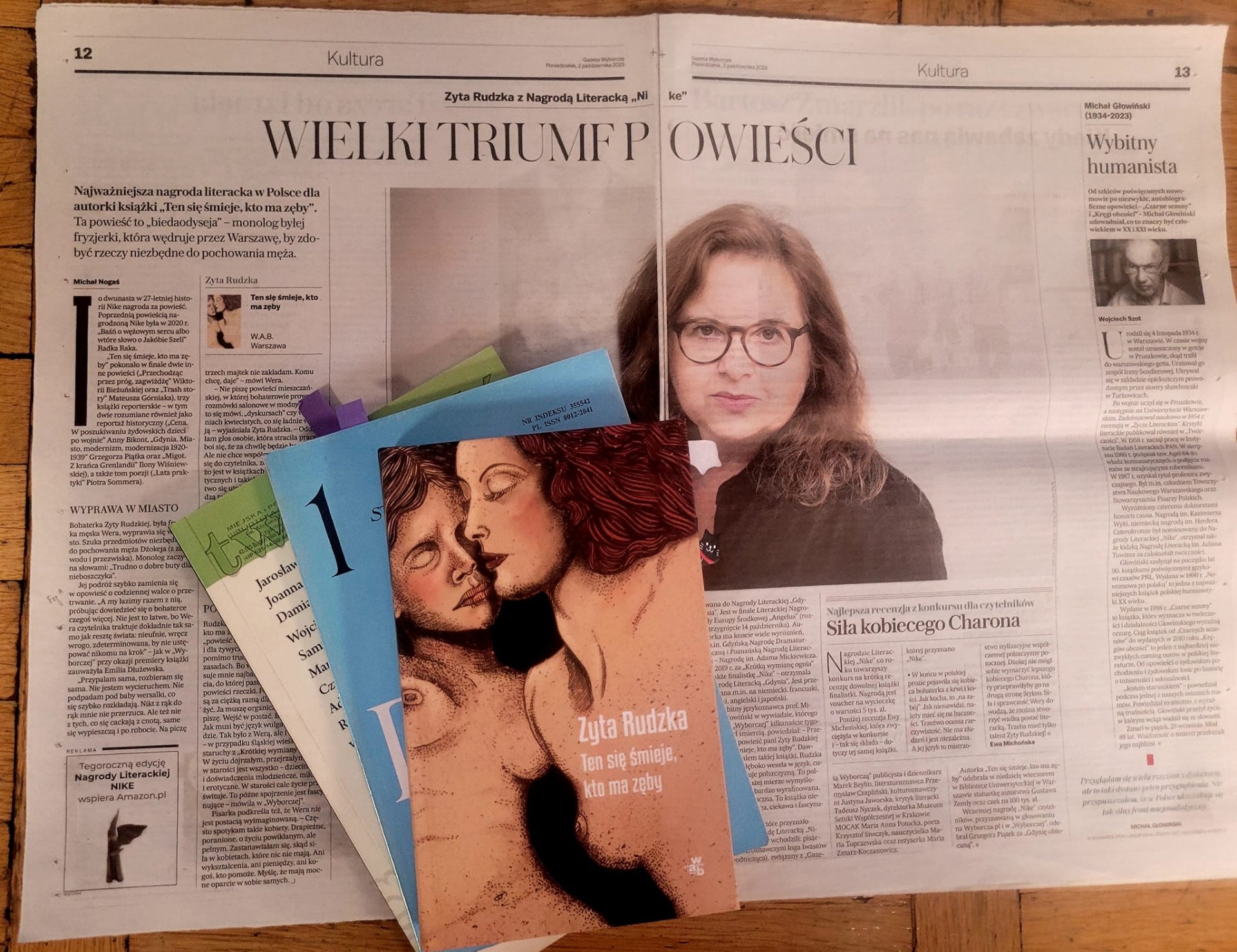Laureatką Nagrody NIKE 2023 została Zyta Rudzka za powieść „biedaodyseję” „Ten się śmieje, kto ma zęby”. W laudacji na cześć zwyciężczyni przewodnicząca jury Inga Iwasiów powiedziała „Nagradzając Zytę Rudzką za tę powieść wyróżniamy istotną, angażującą czytelniczo prozę, fikcję tak porywającą, że odpowiada na pytania zadawane realności”. Najważniejsze było jednak zdanie: „Dziś nagradzamy Weryzm.” I o tym „weryzmie” rozmawialiśmy najdłużej – opierając się o fragmenty książki, artykuły prasowe oraz pracę krytyczną w piśmie „Twórczość”.