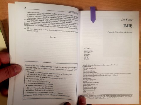 Uczestnicy spotkania mogli zapoznać się z twórczością noblisty dzięki zbiorą Czytelni Głównej, mianowicie w jej zbiorach znajduje się nr 1 miesięcznika „Dialog” z roku 2000, gdzie znajduje się przetłumaczony dramat Fossego pt. „Imię”. Dodatkowo zaprezentowane zostały trzy wiersze artysty oraz wywiad, który przeprowadził z noblistą Michał Nogaś.