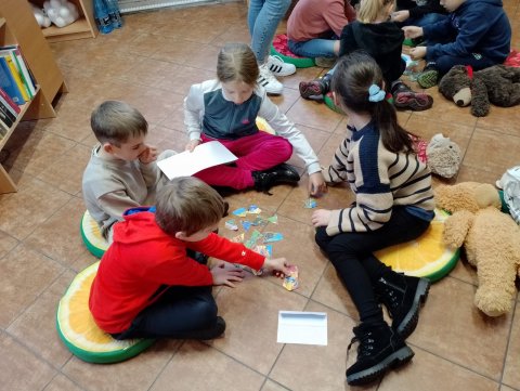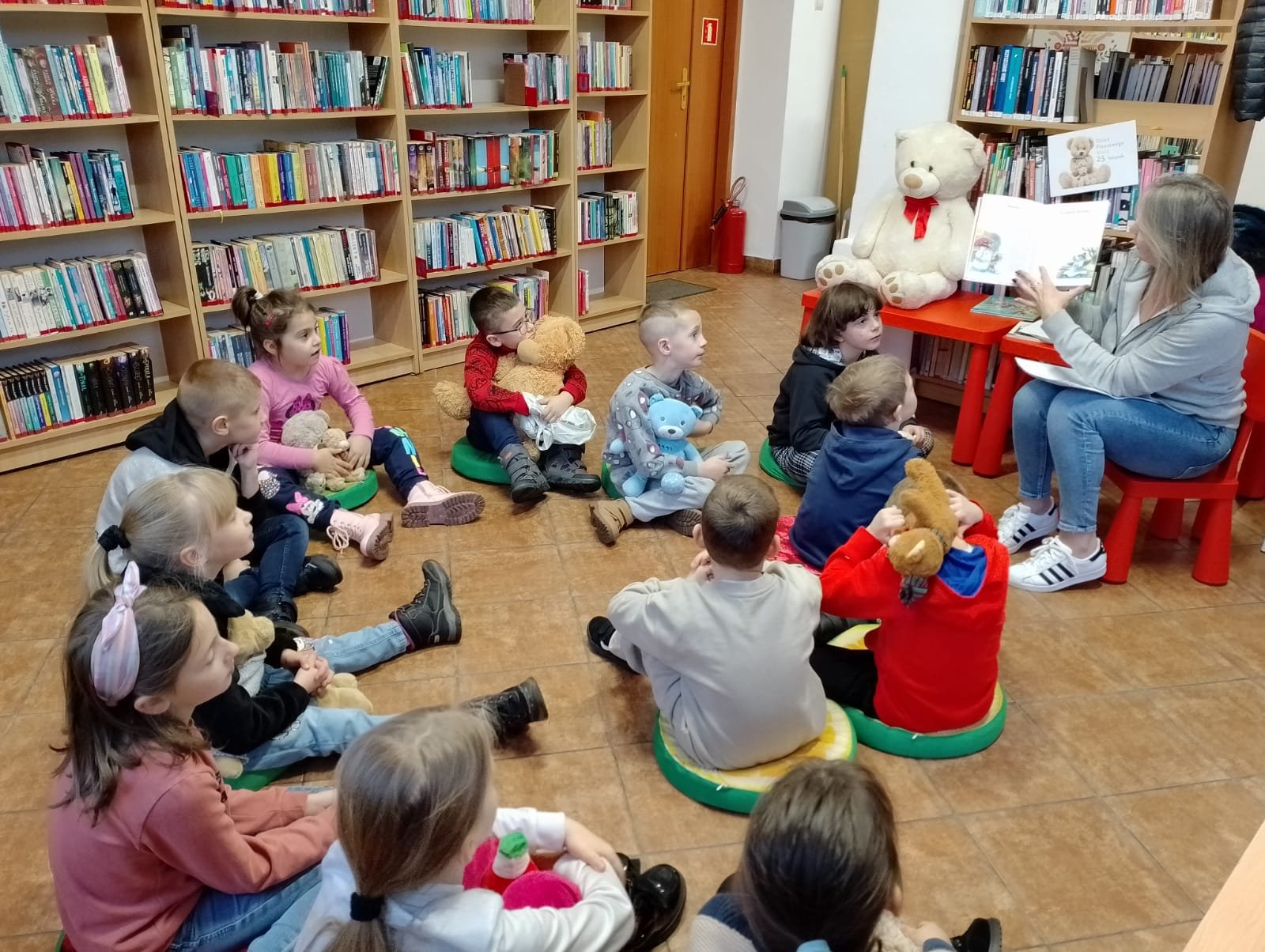 W czwartek 23 listopada uczniowie kl. I a Szkoły Podstawowej nr 6 w Będzinie odwiedziły Filię nr 5 Grodziec bedzinskiej biblioteki w towarzystwie swoich ulubionych pluszowych misiów i wspólnie z bibliotekarzem obchodzili zblizajacy się Światowy Dzień Pluszowego Misia. Zajęcia rozpoczęły się od zapoznania z historię swieta pluszowego misia oraz prezentacją słynnych misiów (Miś Uszatek, Kubuś Puchatek, Miś Coralgol). Następnie dzieci wysłuchały opowiadania „Stary, zielony miś”. Mając na uwadze fakt, że misie są ulubionymi przytulankami dzieci i bohaterami bajek, każdy mógł opowiedzieć historie swojego misia. Uczniowie z wielkim zaangażowaniem uczestniczyli zajęciach. Chętnie czytali wiersze o misiach, rozwiązywali zagadki oraz układali puzzle. Jako ciekawostkę dowiedziały się, ile mamy gatunków niedźwiedzi na świecie, który jest największy, a który najmniejszy i którego należy unikać, bo jest najgroźniejszy. Na zakończenie spotkania dzieci stwierdziły zgodnie, że świat bez MISIA byłby bardzo smutny.