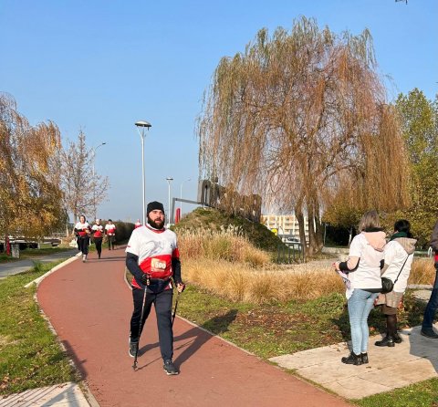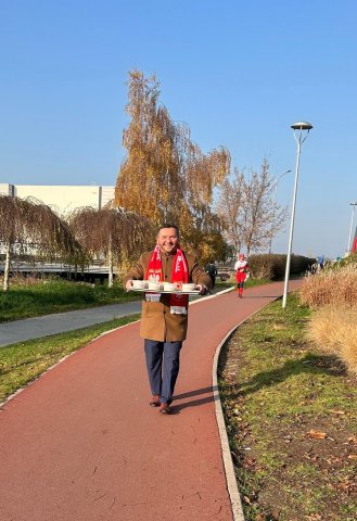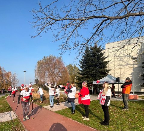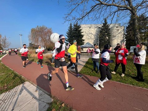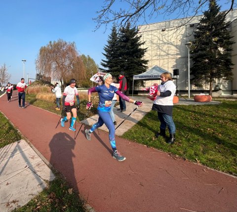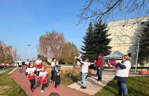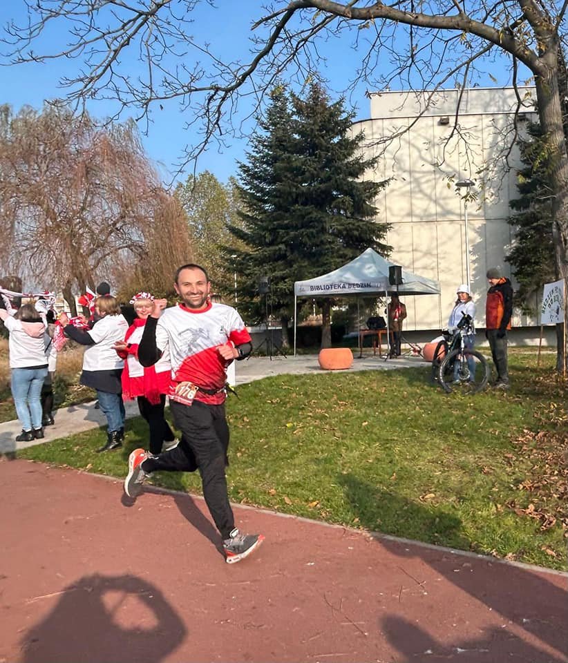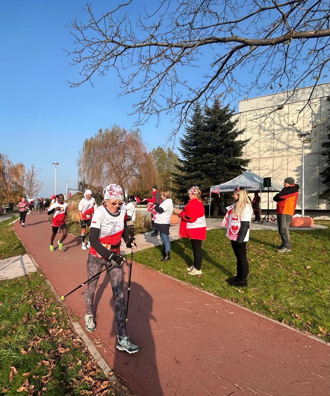 Już po raz drugi gorący doping prosto z będzińskiej ksiażnicy witał wszystkich uczestników będzińskiego II Półmaratonu Niepodległości