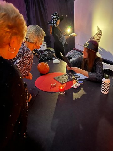 Dokładnie tak było na wczorajszym Balu Andrzejkowym Seniorów, na którym nie zabrakło oczywiście cudnych wiedźm, sekutnic i złośnic, które przybyły prosto z będzińskiej książnicy, by uraczyć każdego zainteresownego ognistą energią, pozytywną wróżbą oraz serdecznym uśmiechem. Zabawa była przednia!