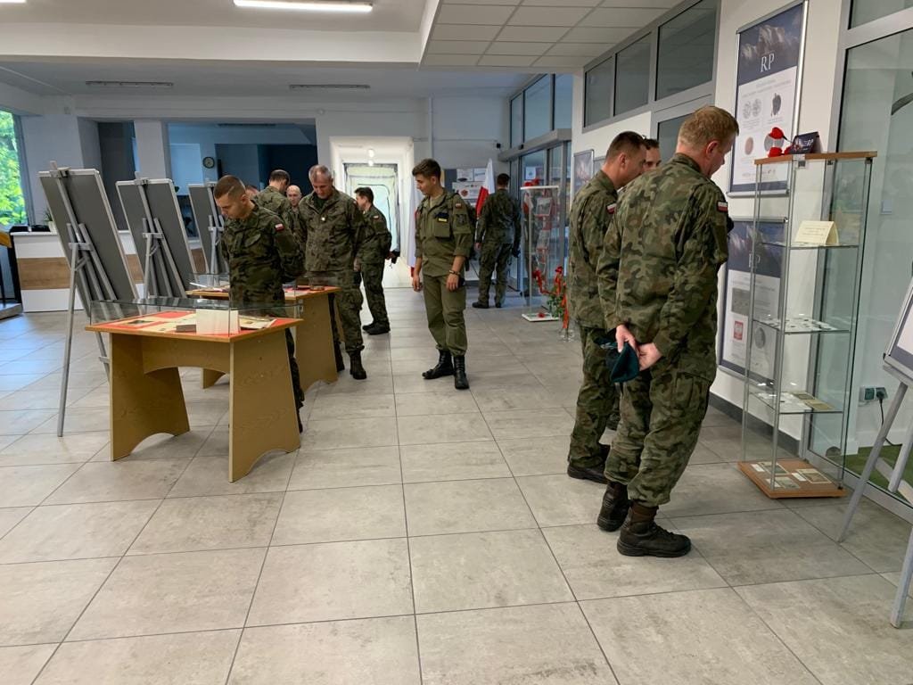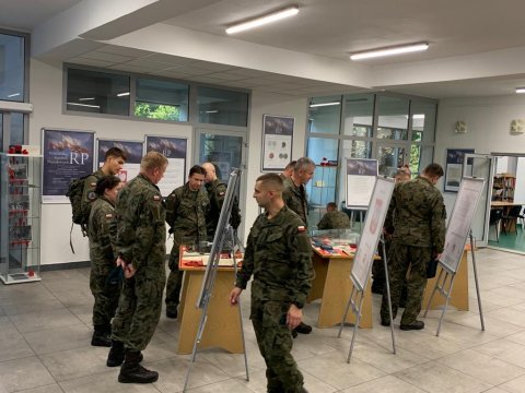 W czwartek, 28 września 2023 r. będzińską bibliotekę odwiedziła grupa żołnierzy WCR Będzin. Celem wizyty była prezentowana w bibliotece wystawa przygotowana w ramach zadania "Widowisko Symboli Narodowych RP".