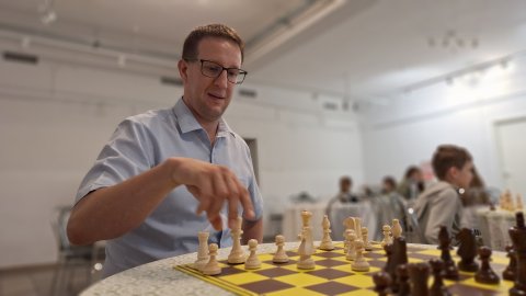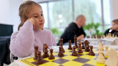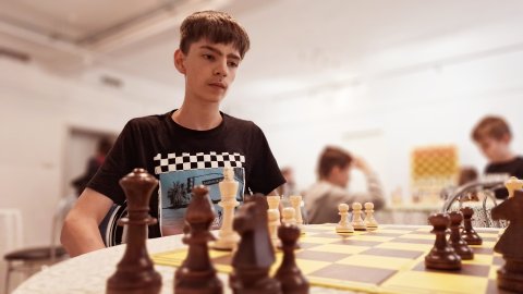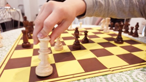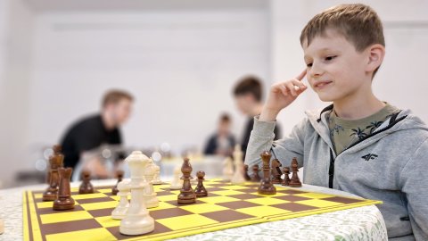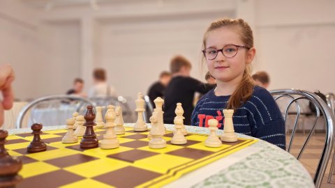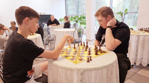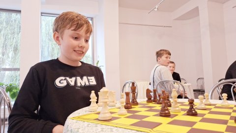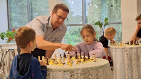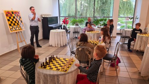 Ponad 20 młodych uczestników bierze udział w zajęciach podczas których zdobywają wiedzę o zasadach królewskiej gry w szachy.