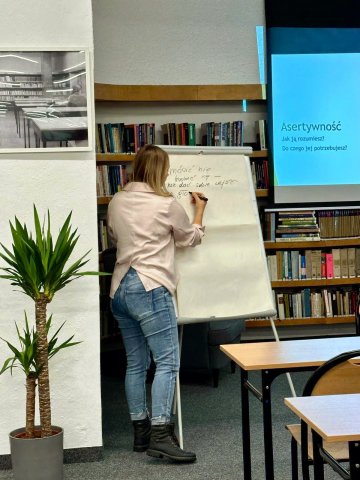 Prowadziła je znana już bibliotekarzom Edyta Naczulska, certyfikowana psychoterapeutka poznawczo behawioralna, nauczycielka Mindfulness, trenerka antydyskryminacyjna i pedagożka, której serdecznie dziękujemy za niesamowicie cenną i potrzebna w komunikacji wiedzę.