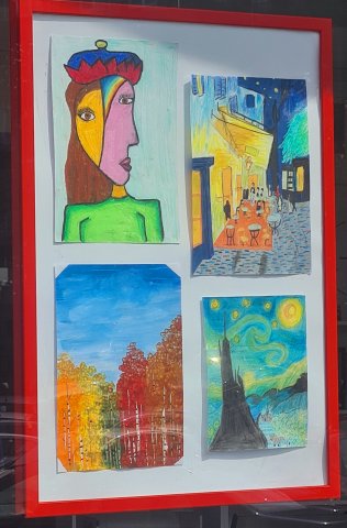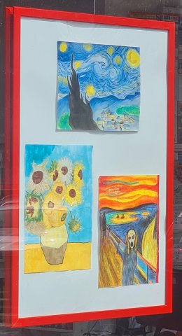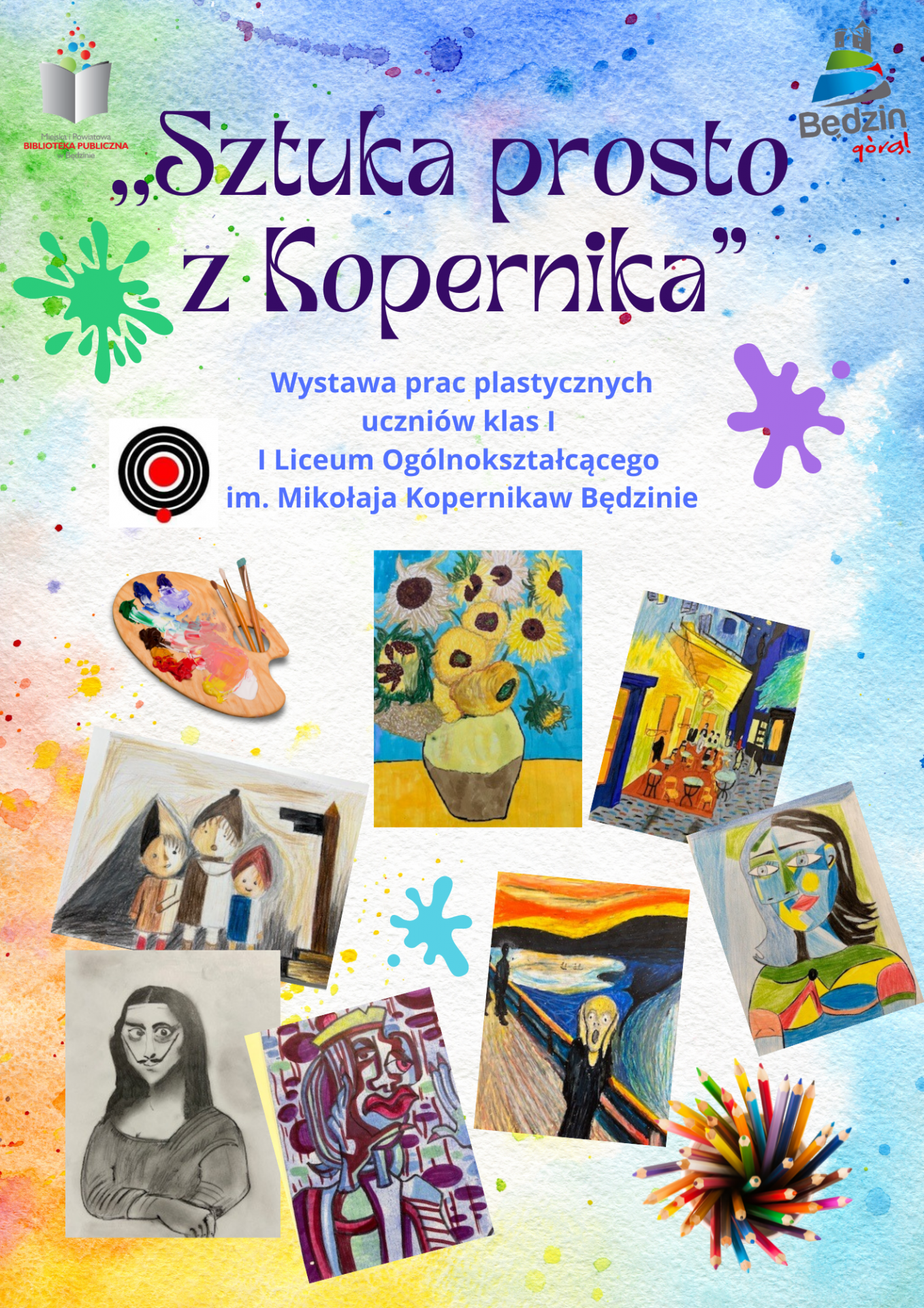 Wybrane, najlepsze prace plastyczne młodzieży klas pierwszych z I Liceum Ogólnokształcące im. Mikołaja Kopernika w Będzinie są prezentowane w Filii nr 3 - Dworzec, wszystkim przechodniom oraz Uczniowie mogli zaprezentować swoją pracę wzorując się na dowolnym dziele sztuki, a jednocześnie prezentując w swej pracy charakterystykę swojej osobowości. Inspiracją do przestawionych prac były także dzieła Vincenta Van Gogha "Gwieździsta noc", namalowany w czerwcu 1889 roku podczas pobytu artysty w miejscowości Saint-Rémy oraz ekspresjonistyczny obraz namalowany w 1893 r. przez norweskiego artystę Edvarda Muncha.