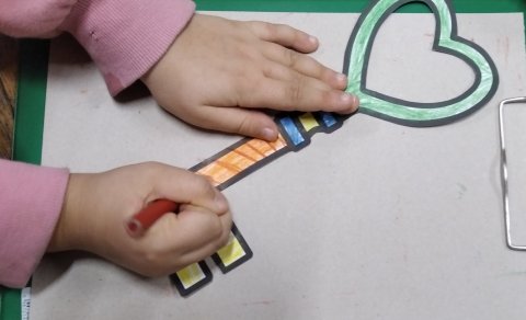 Ponieważ w dniu dzisiejszym szczególne znaczenie ma klucz, który symbolizuje otwarcie i odgadywanie tajemnic, dzieci wykonały na pamiątkę klucze, które ozdobiły kolorowymi dodatkami.