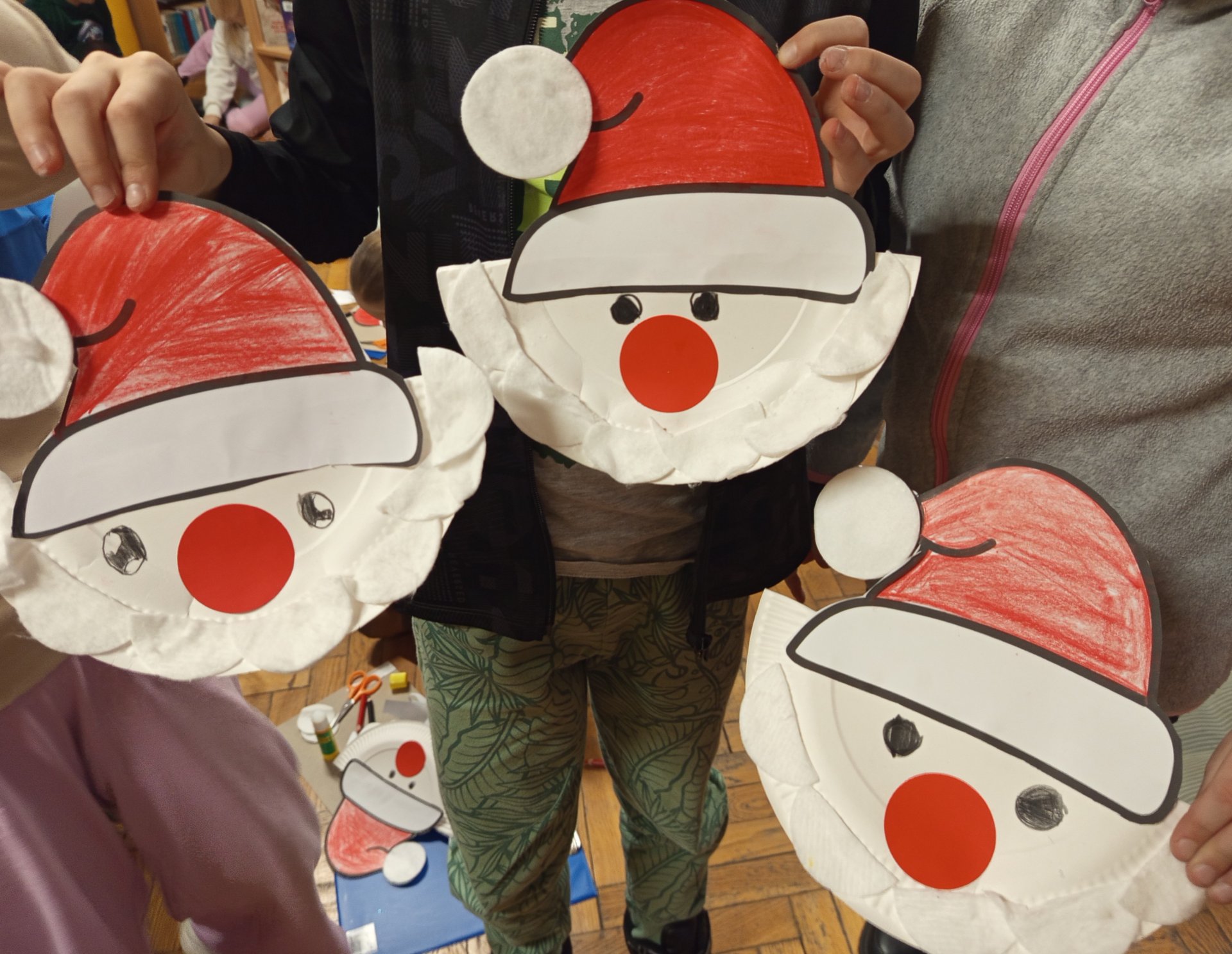 To właśnie Święty Mikołaj stał się tematem dzisiejszej pracy, którą z ochotą wykonali uczniowie. Wykorzystując rozmaite dodatki oraz popularne papierowe talerzyki wykonali na pamiątkę oryginalne i bardzo piękne wizerunki ukochanego grudniowego gościa.