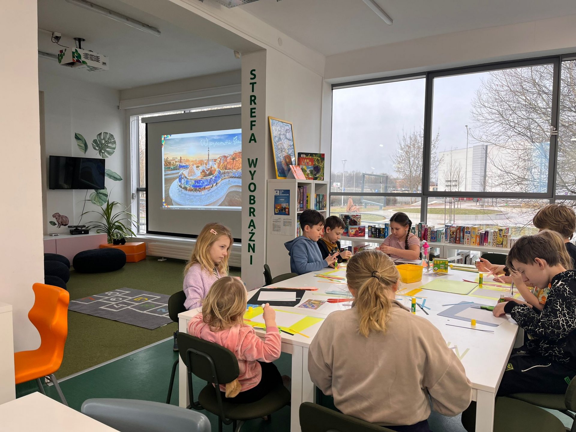 Marzyliście kiedyś o zwiedzeniu Barcelony i co za tym idzie zobaczeniu prac Antoniego Gaudiego? Mogli tego doświadczyć uczestnicy Biblioferii. I choć nie wsiedliśmy w samolot oraz nie postawiliśmy stopy w wyżej wymienionym mieście, to mogliśmy się poczuć jak prawdziwi barcelońscy artyści. Zainspirowani zdjęciami pięknych mozaik zdobiących budynki oraz przestrzeń miasta zabraliśmy się za wykonanie własnych projektów.