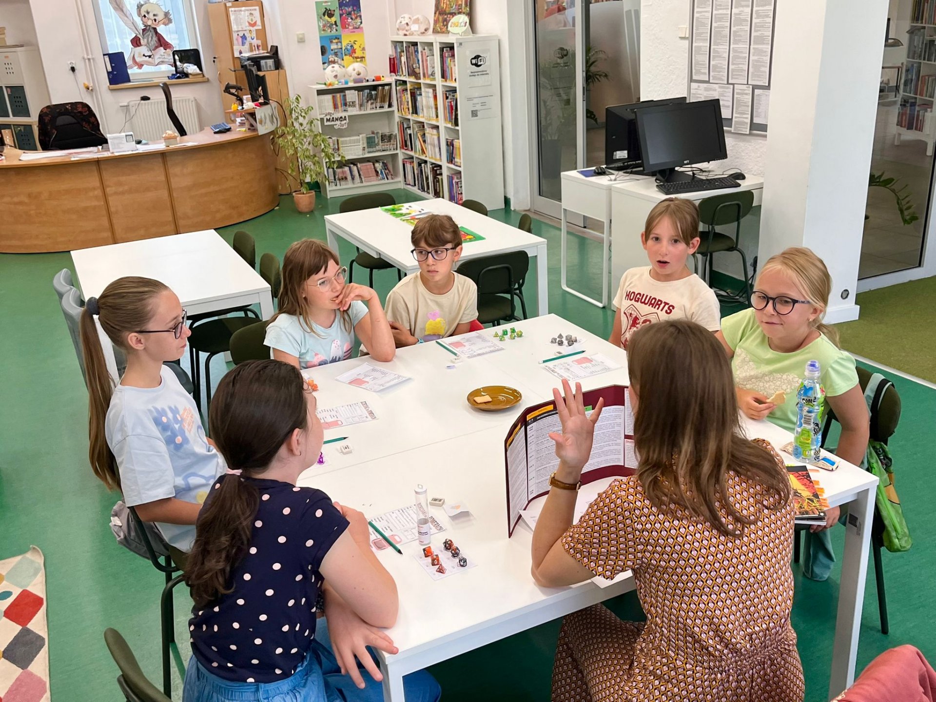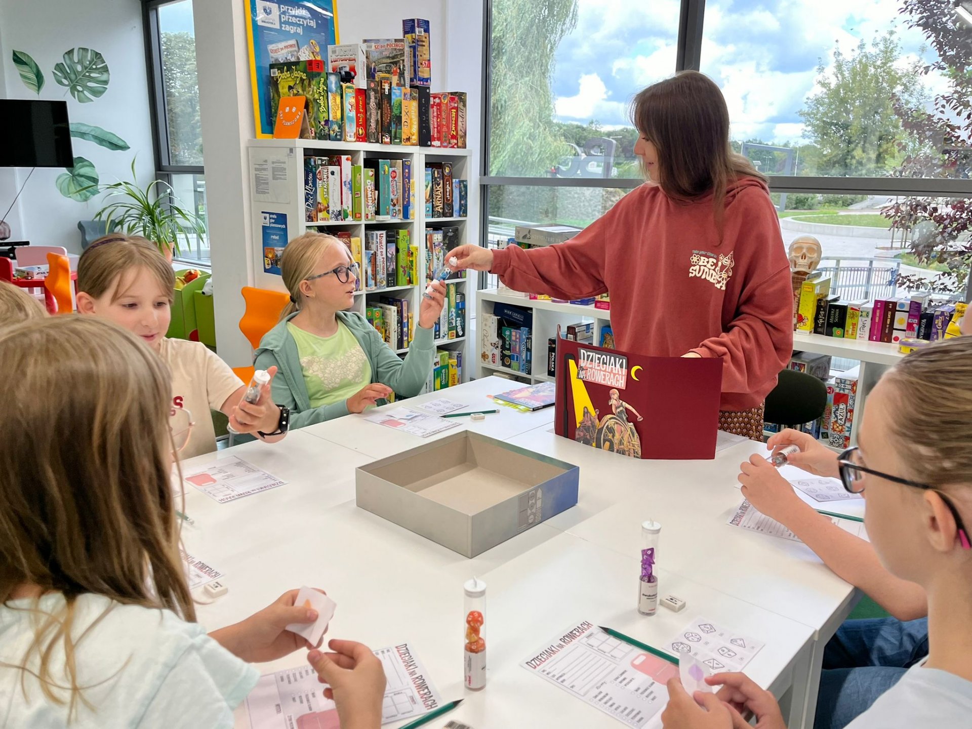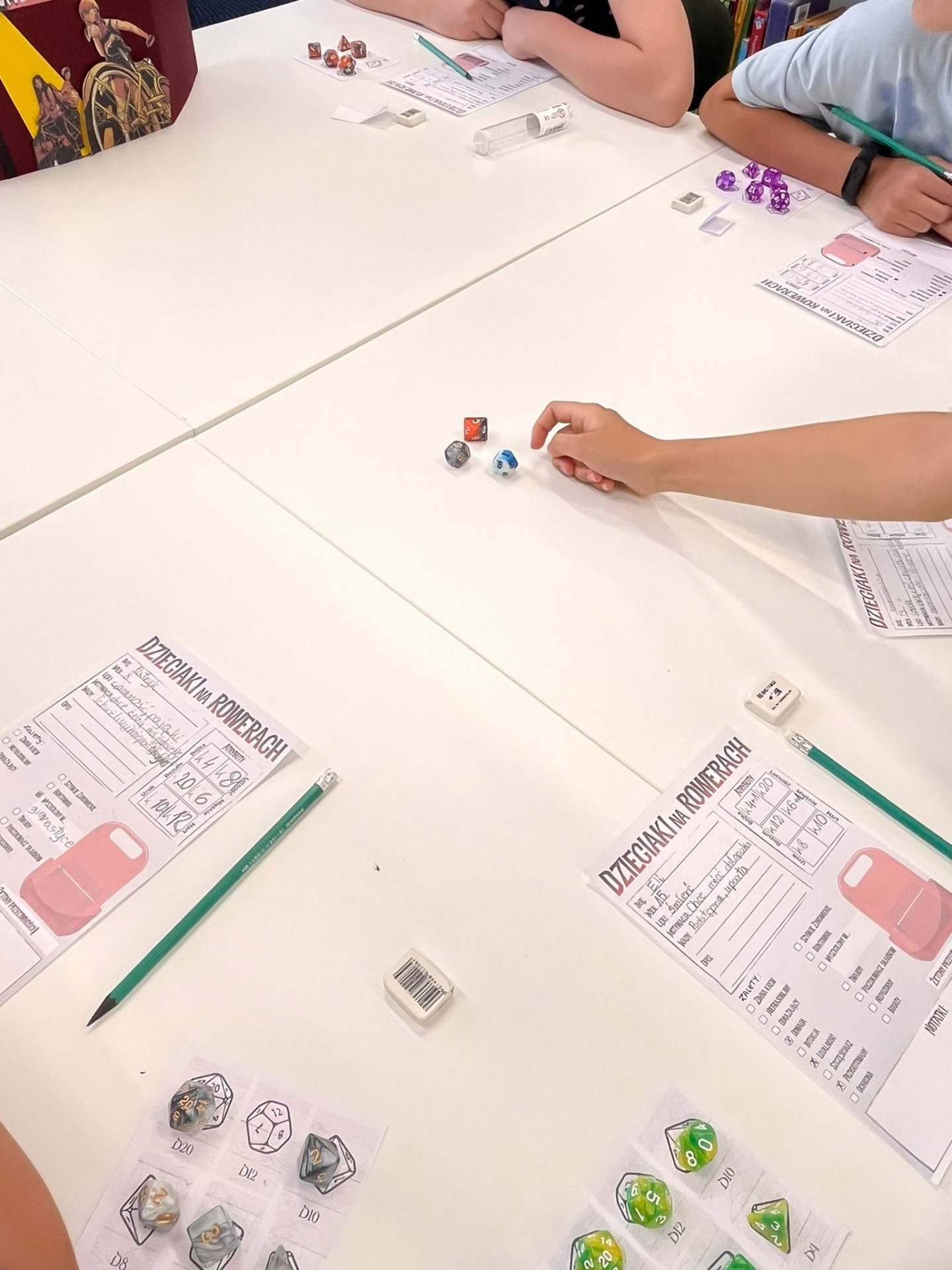 Gdy w małym miasteczku zaczynają dziać się dziwne rzeczy, a grupa nowo przybyłych nastolatków jest bardzo podejrzana, do akcji muszą wkroczyć..."Dzieciaki na rowerach"! Grupa odważnych uczestników zajęć Bbiliowakacji spotkała się w Oddziale dla dzieci i młodzieży, aby rozegrać sesję gry na podstawie scenariusza opracowanego wraz z podręcznikiem "Dzieciaki na rowerach" autorstwa J. Gilmoura oraz D. Levandowskiego. Sesja była bardzo emocjonująca. Gracze mieli ubaw po pachy jednak pojawił się też dreszczyk emocji związany z detektywistyczną zagadką prosto z kosmosu. Dlaczego wyśmienite tarty cytrynowe przestały smakować dzieciom? Skąd u rodziców bełkotanie i otępiałe zachowanie? Kto mógłby wdychać dwutlenek węgla i przeżyć? I dlaczego bezpański pies potrafi teleportować się na zawołanie? Wszystkie odpowiedzi odnalazła grupa bardzo zdolnych uczestników, którzy swoją pomysłowością oraz ogromem wyobraźni wzbogaciła spotkanie o nowe doświadczenia. Już nie możemy doczekać się kolejnego spotkania!