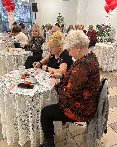 Po porannej dawce aktywności fizycznej popołudniowy czas minął przy słodkościach, kawie, quizach, konkursach i zabawnych zabawach . A wszystko w doskonałym towarzystwie śpiewu Pani Diany Wrześniak, która oczarowała uczestników Walentynek swoim śpiewem wykonując piosenki: Iris - Goo Goo Dolls, Heaven - Bryan Adams, Jej portret - Kasia Mos, Mateusz Mos, I just called to say I love you - Stevie Wonder, oraz A Natural Women - Aretha Franklin.