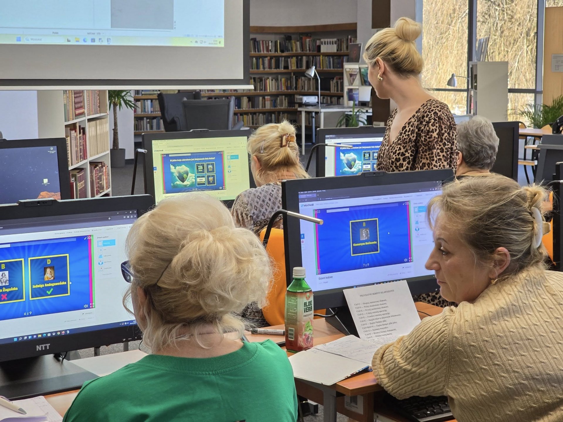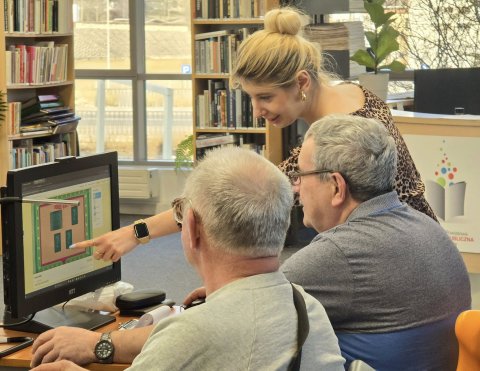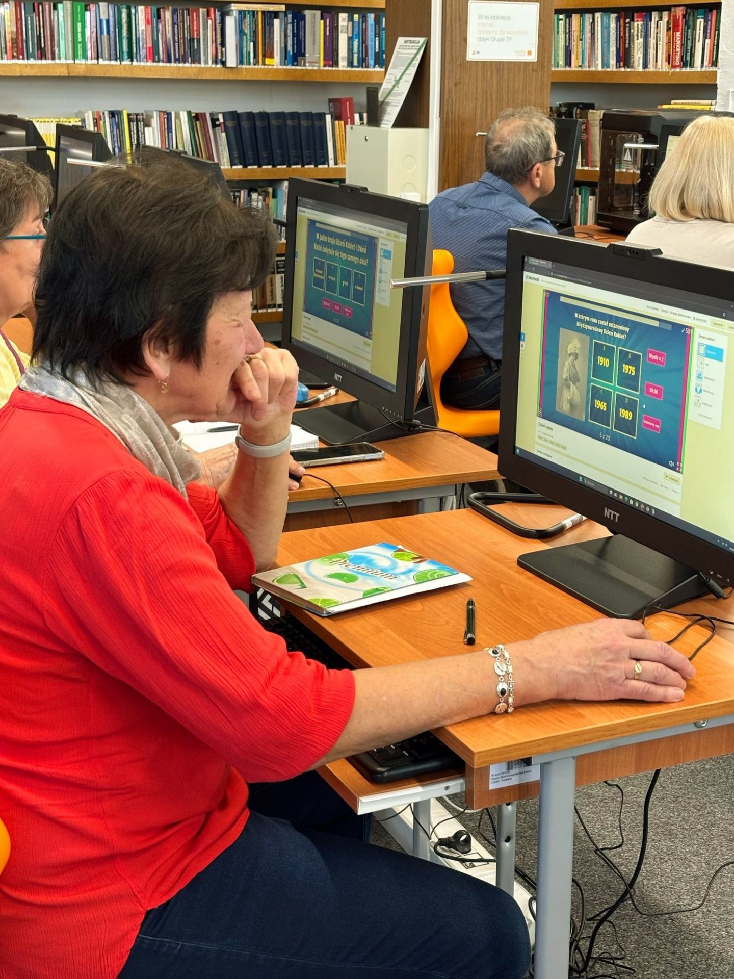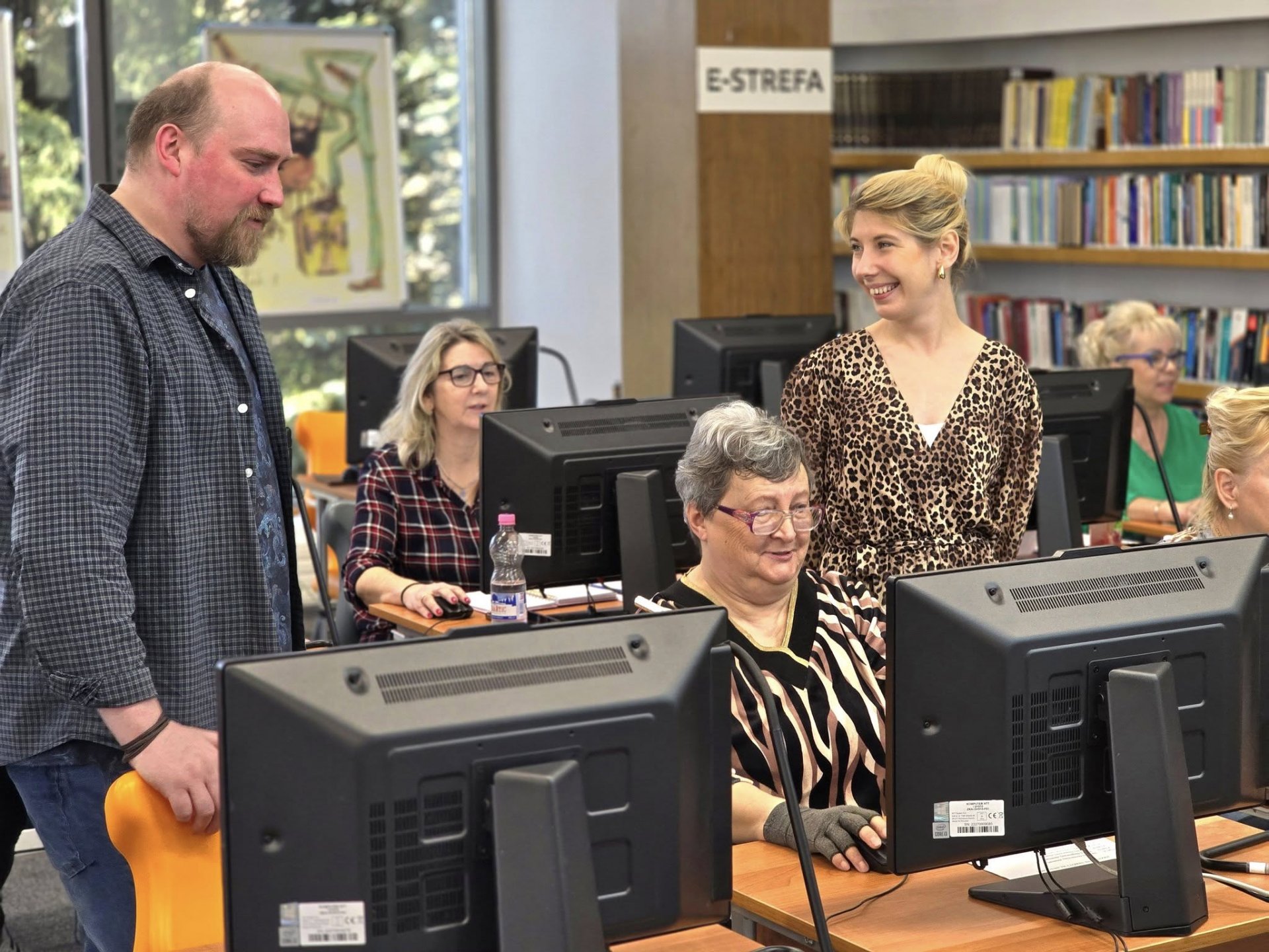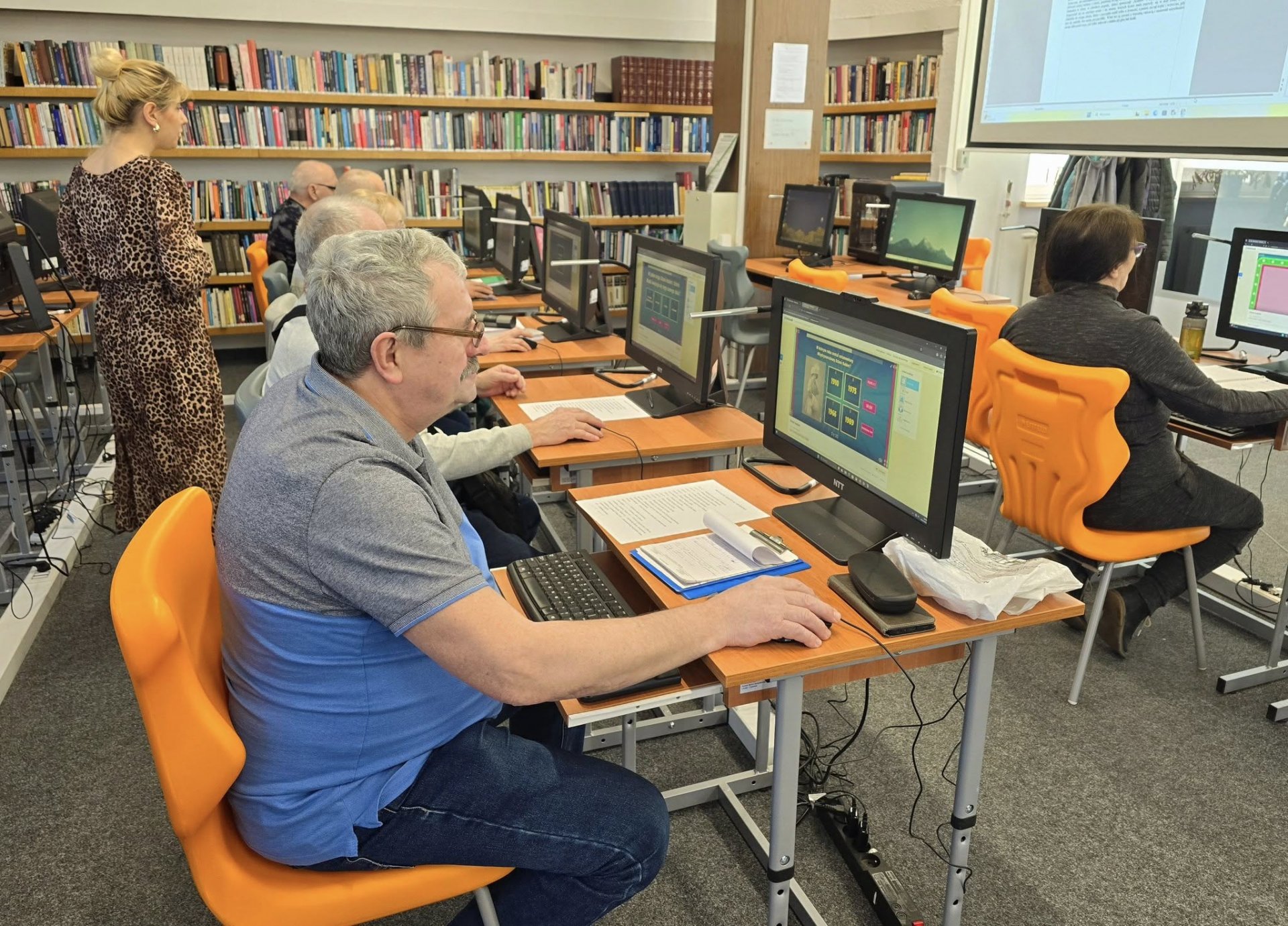 Pracowaliśmy na fragmencie "W pustyni i w puszczy" Henryka Sienkiewicza, a dokładniej na opisie baobabu. Uczestnicy kopiowali, wycinali, wklejali, otwierali nowe dokumenty, a także zapisywali pliki i usuwali je trwale z pamięci komputera – wszystko przy użyciu skrótów klawiszowych! Dodatkowo seniorzy nauczyli się przenoszenia plików z pamięci USB, co na pewno przyda się w codziennym użytkowaniu komputera. Na zakończenie, w ramach rozgrzewki przed Dniem Kobiet, studenci zmierzyli się z niełatwym quizem o tym święcie. Niektóre pytania zdecydowanie zaskoczyły uczestników zabawy.