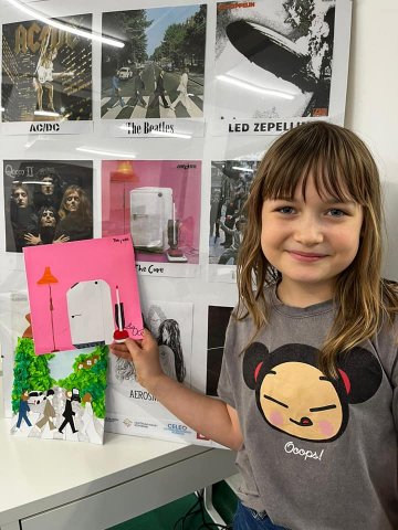 W towarzystwie mocnego brzmienia wydobywającego się z wieży uczestnicy warsztatów wykonali swoje odpowiedniki znanych okładek płyt. Największą popularnością cieszyła się płyta The Beatles oraz The Cure.