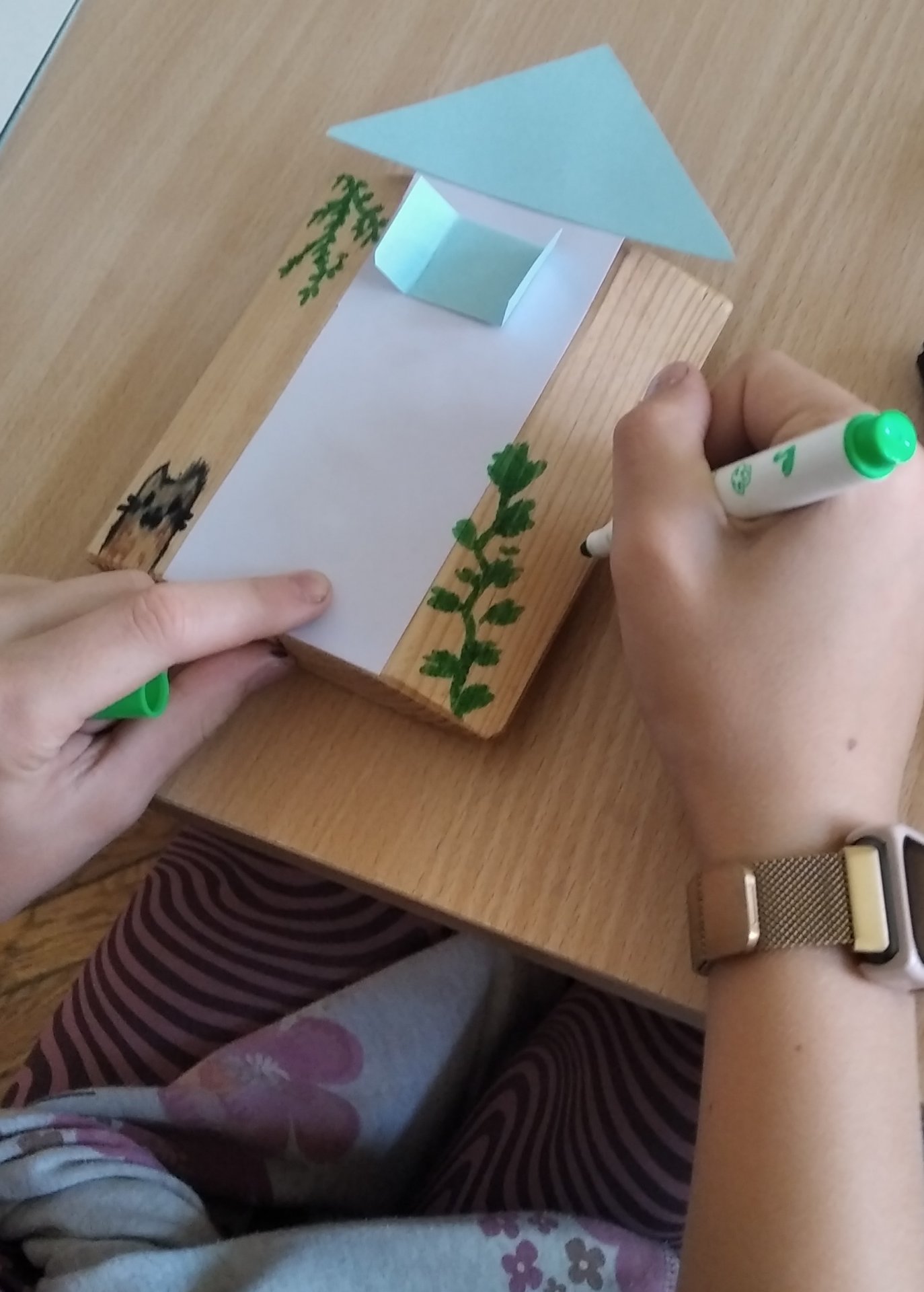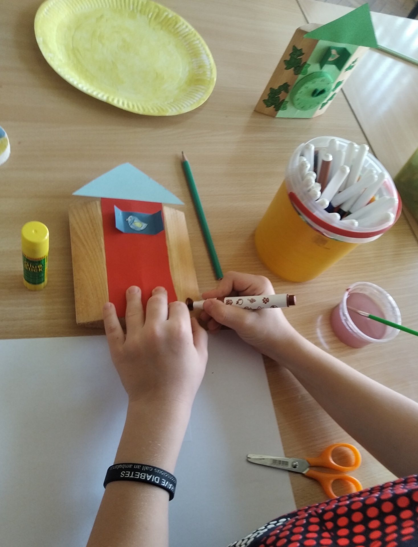 Co prawda nie będą one odmierzały upływającego czasu, ale ozdobią dziecięcy pokój lub sprawią komuś bliskiemu wspaniałą niespodziankę. Poza tym, jak dzieci same stwierdziły, sam proces tworzenia jest bardzo przyjemny i sprawia dużo radości. Podczas spotkania postanowiliśmy przygotować jeszcze jeden zegar. Ten przyda się, gdy dzieci będą chciały przekazać komuś,