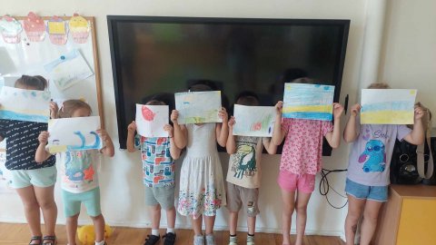 Na koniec zajęć przedszkolaki wykonały prace plastyczne na których namalowały swoje Wakacyjne Wspomnienia.