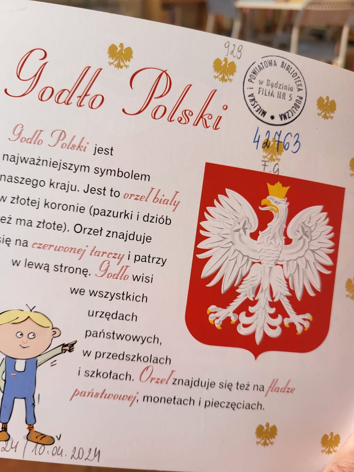 Z okazji Dnia Flagi Rzeczypospolitej Polskiej uczniowie klasy pierwszej ze Szkoły Podstawowej nr 6 im. M. Konopnickiej w Będzinie wzięli udział w wyjątkowej lekcji patriotycznej, poświęconej barwom i symbolom narodowym. Zajęcia odbyły się w Filii nr 5 biblioteki w Grodźcu.