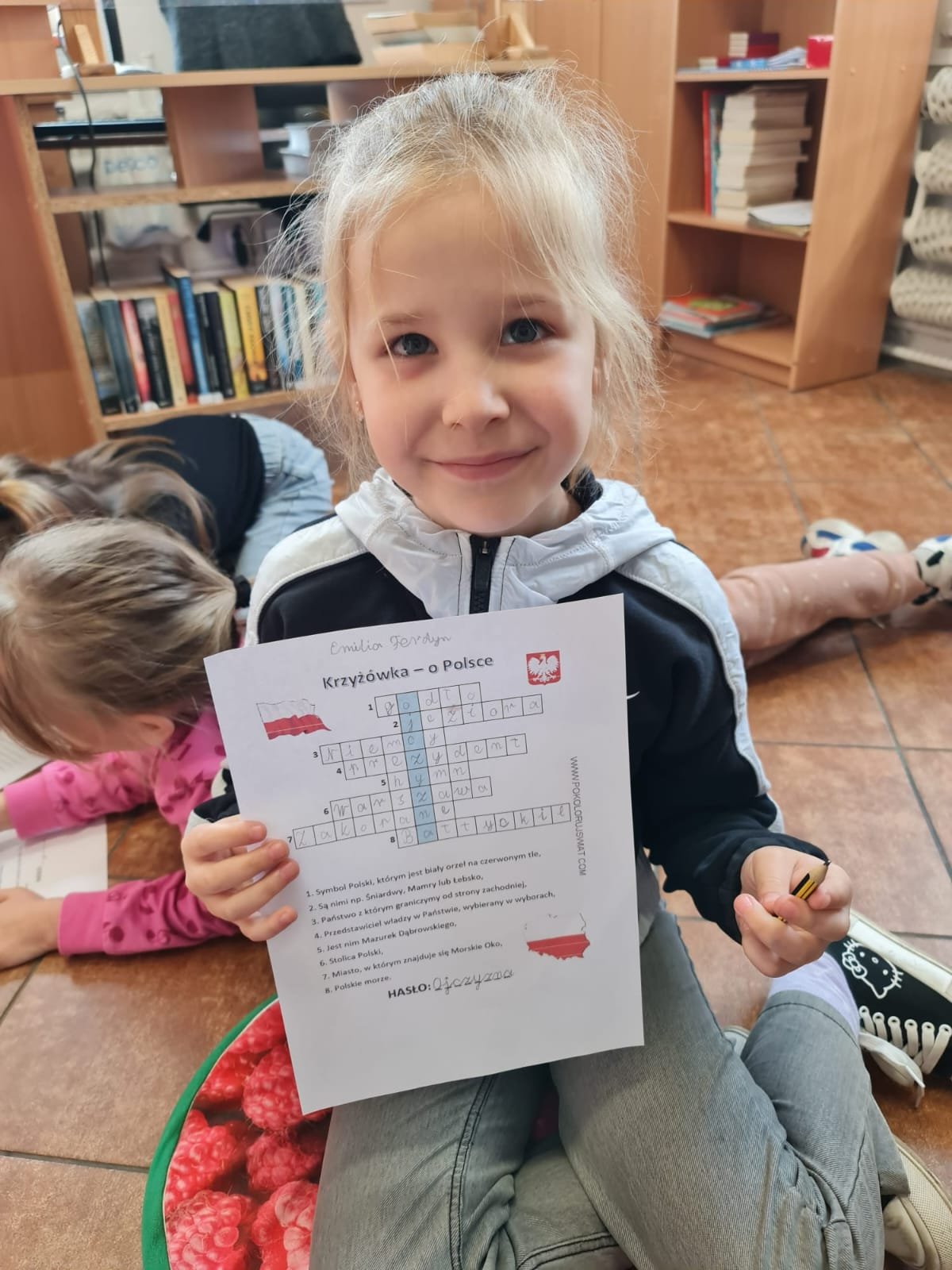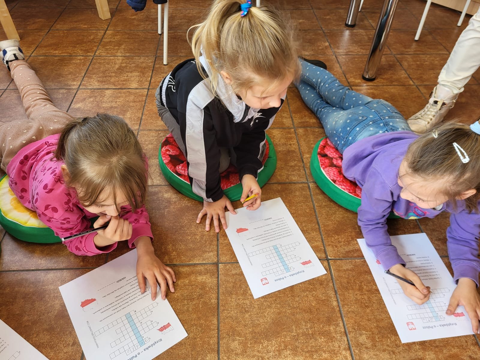 Podczas zajęć dzieci rozwiązywały również krzyżówkę o Polsce, która pomogła im utrwalić nowo zdobytą wiedzę w formie zabawy. Na zakończenie każdy uczestnik wykonał własnoręcznie pracę plastyczną – flagę Polski. Była to niezwykła lekcja patriotyzmu, pełna wiedzy, emocji i radości z bycia częścią wspólnoty narodowej. Ucząc dzieci o symbolach narodowych, kształtujemy ich poczucie przynależności do ojczyzny oraz szacunek dla jej historii i tradycji.