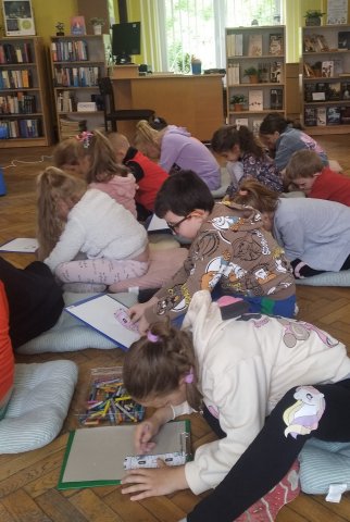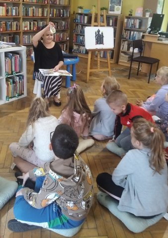 Podczas spotkania dzieci poznały książkępt. "Zamkowe bajanie i inne wiersze dla dzieci" Władysława Śliwonia oraz  "Podania i legendy będzińskie". Stały się one inspiracją do wykonania pamiątkowych zakładek do książki. Przedszkolaki przygotowały zamkowe wieże, które zabezpieczyliśmy specjalną folią laminacyjną, aby mogły długo służyć małym Czytelnikom.