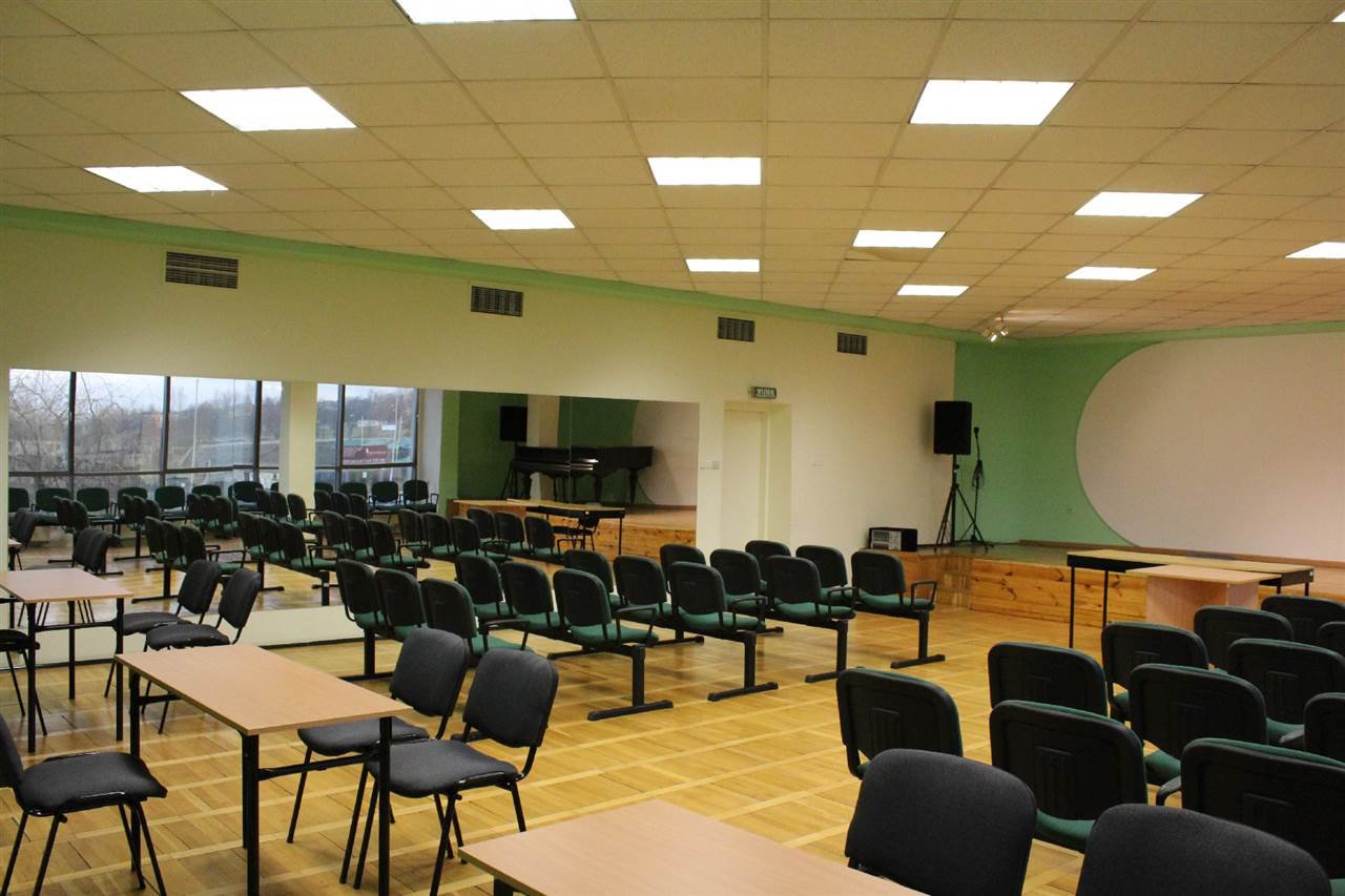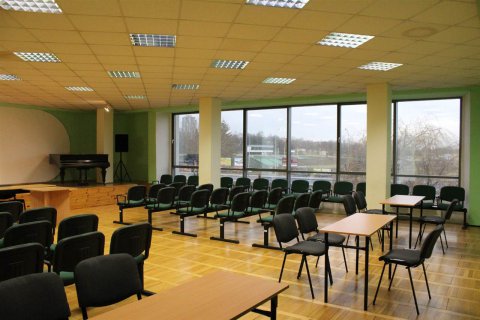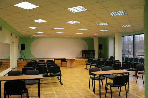 I piętro budynku, 80 miejsc, scena, wyposażenie w sprzęt: nagłaśniający (wzmacniacz + mikrofon stacjonarny + 2 mikrofony bezprzewodowe), multimedialny (rzutnik). W sali mogą odbywać się spotkania konferencyjne, wykłady, kameralne koncerty i przedstawienia teatralne (scena) oraz zajęcia taneczne (lustra)