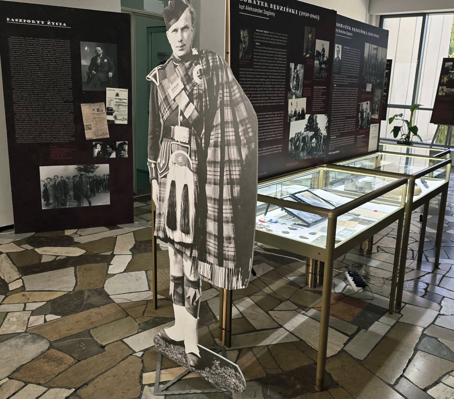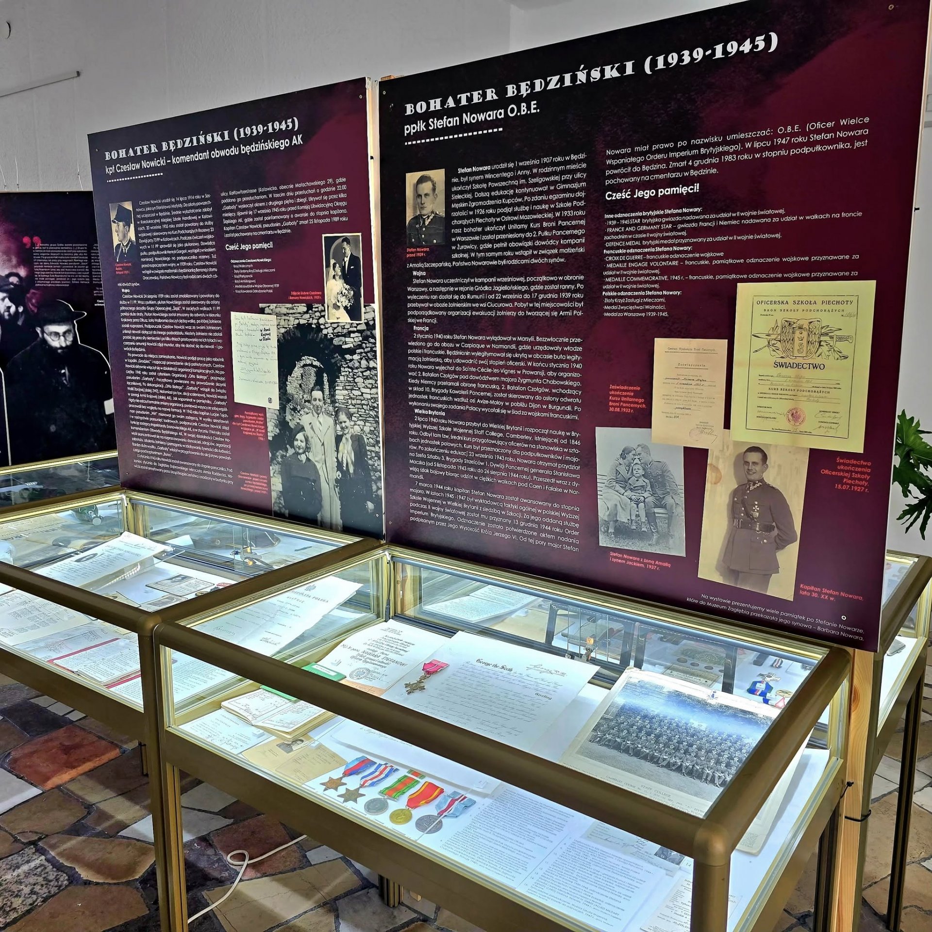 Co czeka na zwiedzających? Przede wszystkim bogactwo i różnorodność prezentowanych materiałów. Oprócz archiwalnych fotografii, w tym tych udostępnionych przez Muzeum Auschwitz-Birkenau, można zobaczyć niezwykłe pamiątki, które ożywają historię. To m.in. dokument z 1944 roku, podpisany przez króla Jerzego VI, dotyczący Orderu Imperium Brytyjskiego, a także unikatowe elementy umundurowania Polskich Sił Zbrojnych na Zachodzie. Szczególnie poruszającym eksponatem jest pasiak należący do będzińskiego lekarza, Tadeusza Kosibowicza, który był więźniem obozu na Majdanku.