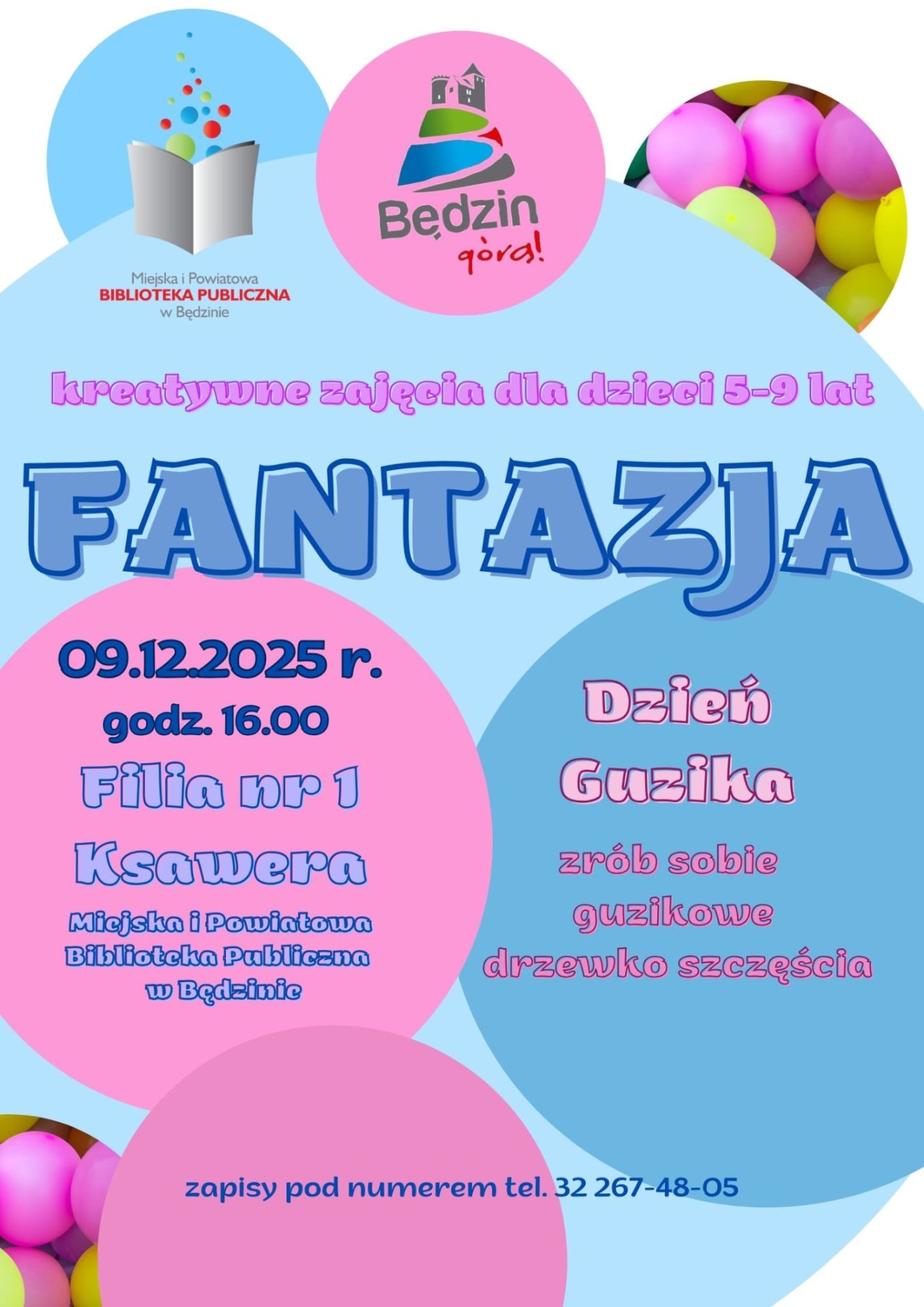 Cykl zajęć edukacyjnych pt.: FANTAZJA odbywa się w Filii nr 1 - Ksawera, ul. Wisławy Szymborskiej 2, 42-500.